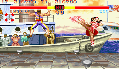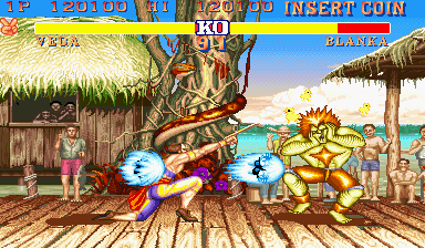 Certain characters, like Honda and Zangief, can now move much faster, and there are a lot of moves that release hadouken projectiles, such as Vega's roll. When fighting the CPU, your opponents will often change to a different character when hit. You can also change characters yourself by pressing the start button. |