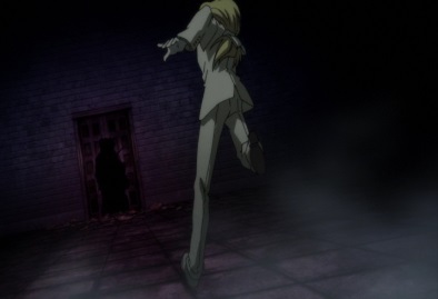 Integra sees what has happened to her men, and what Seras is doing. She rushes over and tells Seras that's enough, and she can stop. Seras snaps out of in and calms down. Walter kicks Jan into a wall, and tells him it's all over. He wants to know who put him up to this, then he'll put him out of his misery. Jan calls him a pussy. |
