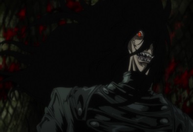 This shuts Seras up for the moment, as Walter reminds her that as she is refusing to drink blood at the moment like a proper vampire, she will slowly become weaker. She must now sleep in a coffin filled with the soil of her birth place, as this is the only way she can keep up her strength. Is she still feeling uncomfortable with the situation? Seras says she is, just as Alucard walks in and calls her an idiot. He reminds her that she chose the night, and once she turned her back on the light of day, all the sunlight should mean to her is smoldering pain and a slow death. |