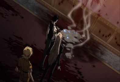 Even when they get shot they keep going, and Hellsing's forces are slaughtered. Jan gets in on the act, and after killing several soldiers, he declares he feels so hard right now. |