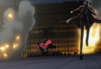 Alucard heads out of the hotel, killing more police on the way. He gets outside and finds a vampire called Tubalcain Alhambra waiting for him. He's the one who had been working with the police, promising the police superiors the chance to become immortal. He and Alucard quickly get into a fight, and Tubalcain's exploding cards and Alucard's bullets result in more police getting killed. Nearby, Vernedead finds and kills all of the police superiors. |