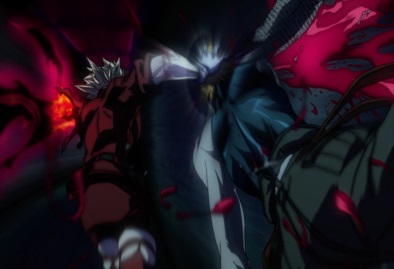She then splits the man in half with her scythe, and says she's sorry that she had to cut his reunion short. Elsewhere in the mansion, some of the Nazis are feasting on the dead Wild Geese, making a game out of it: they try to guess their blood types as they consume them. But they then all get shot to pieces. |