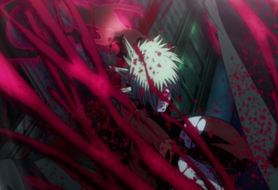 Seras says that Zorin called Vernedead a gnat, so she will pay. She screams that Zorin will pay, and then bites down onto Vernedead's neck. She starts sucking his blood. |