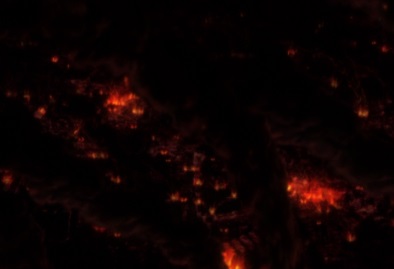Over London, the Major stands on the top of his zeppelin. He says this is what his eyes have so longed for, and looks at the carnage happening below. |