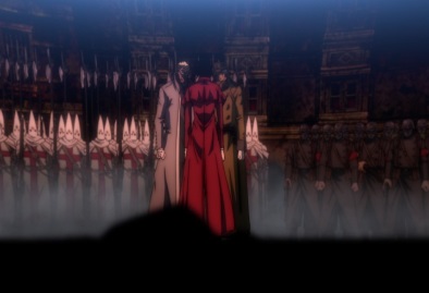 After killing another group, Seras looks around and says that she'll make them pay... every last one of them will be torn to shreds. Elsewhere, another group of Nazis approach the Round Table conference room. |