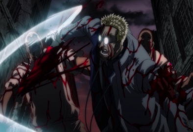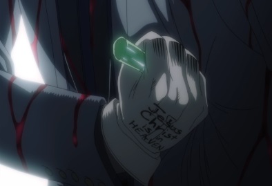 Heinkel and the others have appeared, and she says if they did went back they'd no longer be soldiers of Iscariot any more. Yumie slices the head off of the large guy who'd attacked Anderson. Yumie reminds him of the things he taught them, but he wanted some of them to survive, and carry on their work. Too many have died today already. But as he's about to charge full speed into hell, he might as well have some company. |