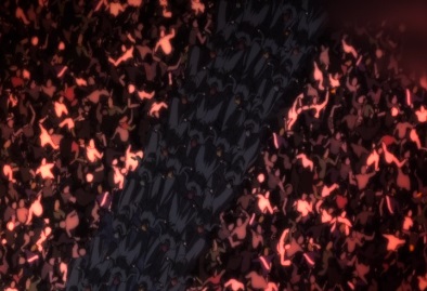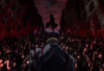 The forces of Iscariot charge. The Major is watching, and says countless little lives struggle together. Like tiny cells making up a great beast, struggling towards its own elimination. Seeking blood, whilst spilling blood. He says they are all united now by the same thing, and tells his dark brethrens it's a dream come true. |