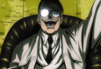 Integra happens to see his helicopter fly past, and says that he has betrayed them. Anderson says sneak attacks and betrayals are just par for the course in war. In some circumstances he'd even say they are worthy of praise, especially against heathens such as her. But this is different, and he can't let this pass. He thinks Maxwell has become enraptured by his own authority, and intoxicated by his power. They're meant to be mere instruments of a higher power, a blade in the service of God. |