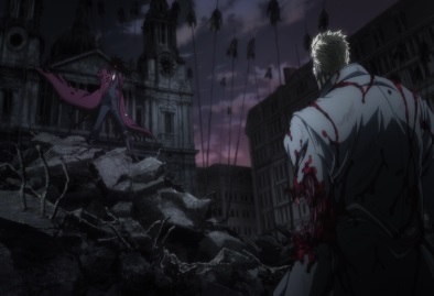 Both of them then suddenly look in the same direction. They've both sensed Alucard, who's finally arrived in London on the Eagle. |