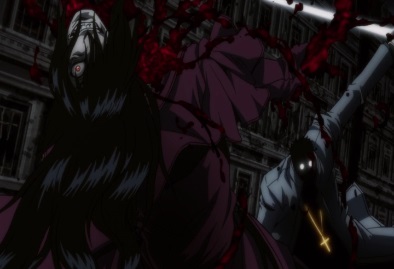 Alucard congratulates his nemesis on his attack. Anderson says he is a servant of God, an agent of diving punishment on Earth. He was called on to cut away the flesh of infidels, and remove from the Earth all those who would defy God. The two clash again. |