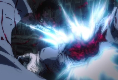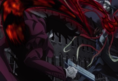 Alucard starts shooting. Both Alucard and Anderson can now heal wounds instantly, and Anderson's thorns are capable of countering Alucard's shadow matter. |