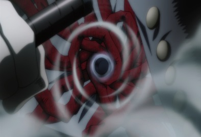Integra knows that Seras has sucked Vernedead's blood, and has now finally become a vampire. Heinkel and Yumie get ready to attack her, but Anderson tells them to stand down. Even with their powers combined, that girl is way too much for them to handle. Anderson says that Seras has become quite the fearsome creature. Seras tells him she's getting stronger all the time, and she doesn't think she'll be afraid of anything ever again. He says that her eyes have become windows to a bottomless abyss. It's striking, considering how human she looks otherwise. |