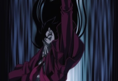 ...and pats her on the head. He calls her by her real name, and is clearly proud of what she has become. Anderson then drops down and clashes with Alucard. |