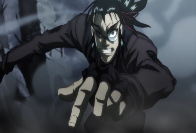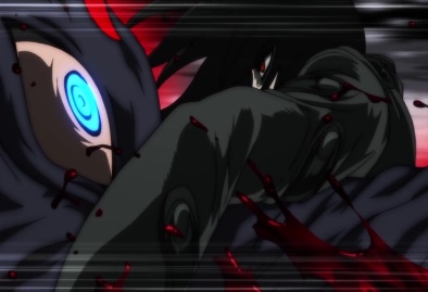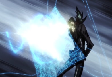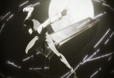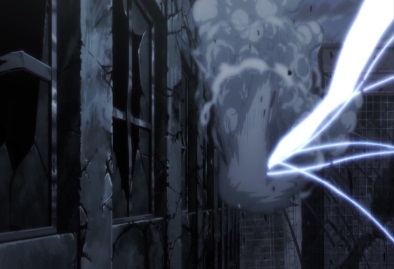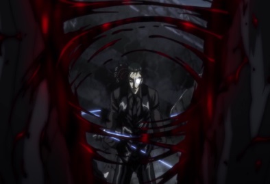 She moves so quickly she becomes a streak of blue light, which passes by Walter. She then reappears behind him, having used her Shimbara quick draw attack, and tells Walter he's dead. But he tells her that she's the one who's dead. |