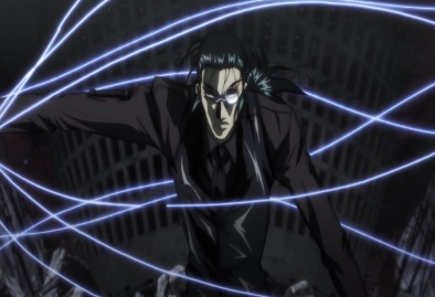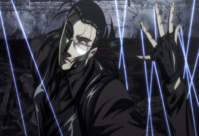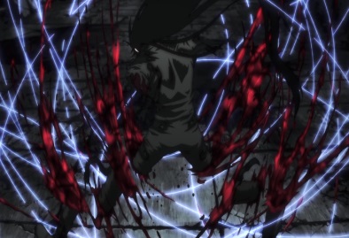 He uses his wires to slice up some buildings, causing them to fall. Integra asks if that's him. He says the dead are nothing but refuse, and there's no need for anyone to mourn filth. |