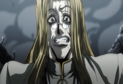 Seras asks Walter what they've done to him. He calmly explains that he's obviously been captured, brainwashed and turned into a vampire, and has been forced against his will to turn his friends and master to bloody shreds. He asks Seras if that was the sort of explanation she was looking for. He then says he answers to no man's will but his own, and he is himself in mind, body and soul. He's the Angel of Death. |