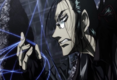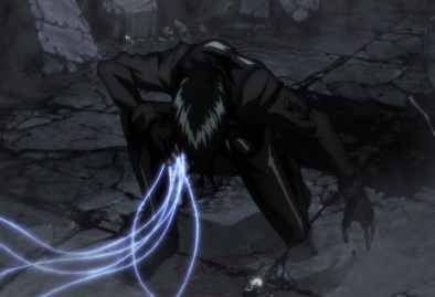 He then charges towards his opponent, destroying the thorny vines he sends out. As Integra and Seras watch, Integra thinks about what her father once told her. He said that there are many immortal monsters roaming the Earth. When he looked at them, he wondered if they were created out of their desire for immortality. |