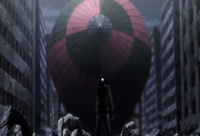 Yumie sees her hand split apart, along with her sword. She realizes that without a scream, or single slash, she's got nothing left, and her world tumbles to its end. Torn apart by Walter's wires, she dies instantly. |