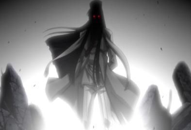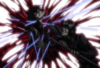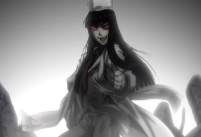 Alucard bows before Integra, and tells her to give him her orders. He can kill Walter without the slightest hesitation or hint of regret, but it's her will that commands the killing. The Major is watching, and tells Integra to say it. |