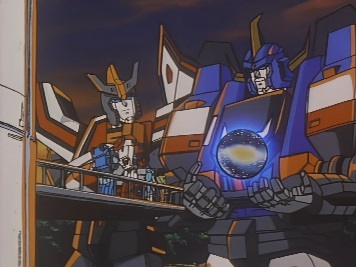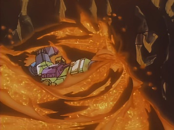 However, Dai Atlas transforms and drills into the cave, which results in a river of lava washing Devastor away and melting him. King Poseidon heads back up, but gets shot at by Sonic Bomber, and drops the zodiac. Dai Atlas manages to catch it, but Dinosaurer then uses a new attack called the energon Z beam, which knocks Dai Atlas down. Sonic Bomber then takes a hit meant for Dai Atlas. |