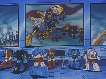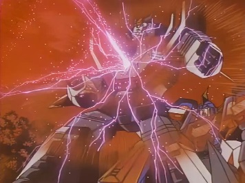 76 days later, the Destrons head to Planet Zone, and are seen by the Cybertrons there. A battle begins, but the Destron's super armor makes them invulvernable, and Overlord is able to take an energy source the Cybertrons used to build Zone, called energon Z. The Destrons withdraw, so a team of Cybertrons, along with Cain and Emusa, head after them. They are soon confronted by Black Zarak, who blasts their rocket and traps it in an electric net before leaving. The Jet Team arrive and free the rocket from the net. |