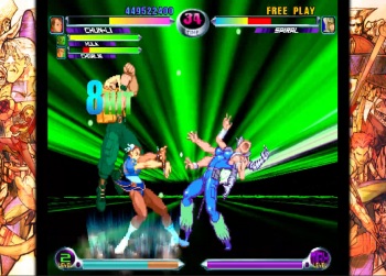Playthrough with Bison and Cammy, using the version of the game included on Marvel Vs. Capcom Fighting Collection Arcade Classics. This is the easiest game on the collection as the CPU is, for the most part, pleasant to fight. The boss is the biggest seen in the series yet, but so long as you take your time he’s not very difficult to defeat. I got the Akuma battle in this playthrough. To get him to appear, you need to win a couple of fights with team hyper combo finishes before stage 6. If you do that, Akuma will be teamed up with a random character for the stage 6 fight. |