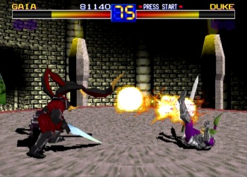 Playthrough with Gaia. This game plays very slowly, with sluggish movement and questionable hit detection. Gaia is the game's boss, who has a very good desperation move that's especially effective if done at close range. |