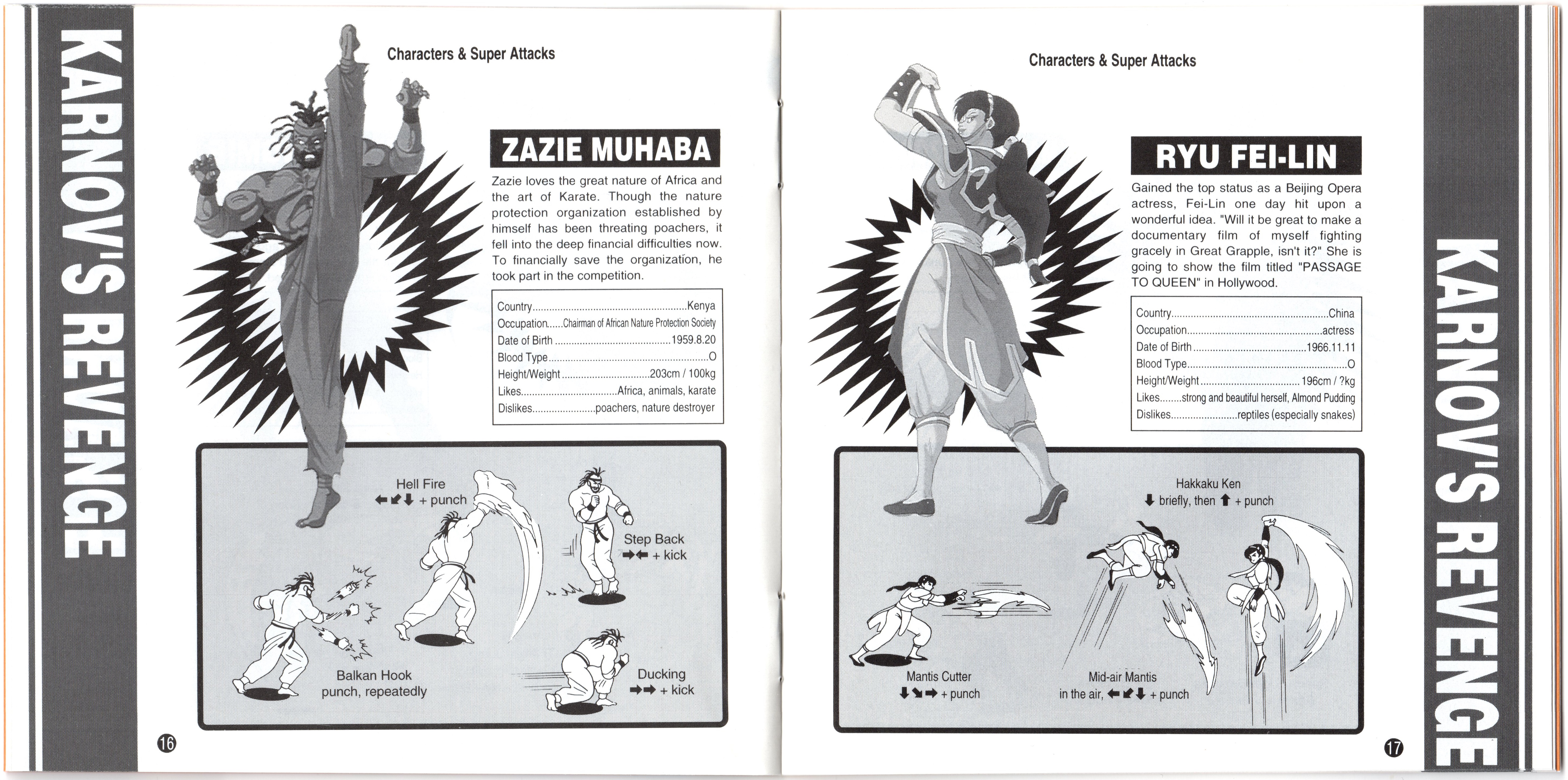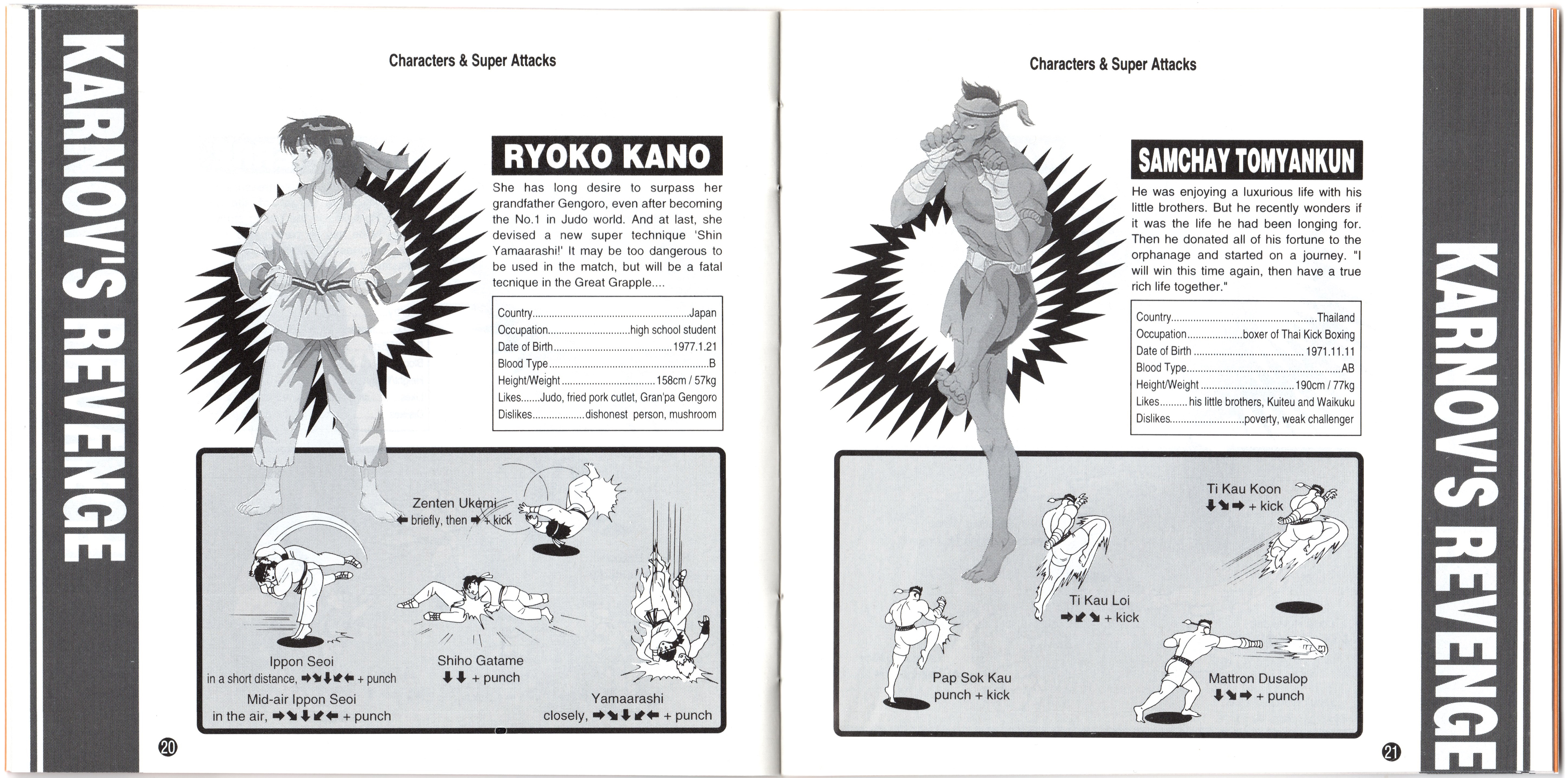 NOTES -When compared to the manual for the Japanese version, there are a few changes to certain character's stats for the English version's manual: |