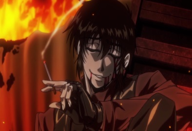Walter finds what the Nazis used to create vampires: the skeletal remains of Mina Harker, the only woman that Alucard fed upon, and in turn, fed upon him. He uses his wires to pull down part of the ceiling, which crushes Doc to death. Walter then starts smoking, and says this is a shame, as he'd hoped to give Alucard a proper send off. With his final words he tells his master, Integra, that they had a good run. The lab is then completely engulfed in flames. |