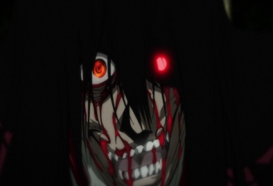 He slices up some of the ghouls, and tells Jan he should piss himself, and then pray to his God. Jan laughs and says this is great, as plowing through all of Hellsing's troops was really starting to bore him. |
