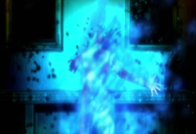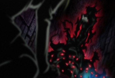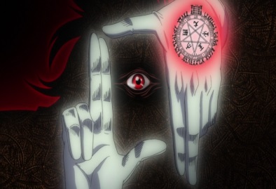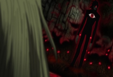 Luke finds himself surrounded by eyes, which all stare at him. Alucard has changed his form, and he tells him that it's time he showed him how a real vampire does battle. Changing into a dog, Alucard lunges at Luke. |
