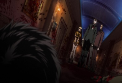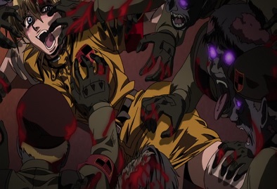 Even when they get shot they keep going, and Hellsing's forces are slaughtered. Jan gets in on the act, and after killing several soldiers, he declares he feels so hard right now. |
