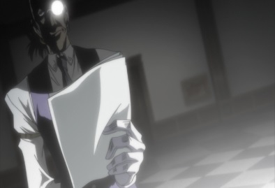 Elsewhere Jan leads his forces towards the conference room. He starts saying all the terrible things he wants to do with Integra, but then Walter appears. Suddenly the end of Jan's cigar is sliced off. |