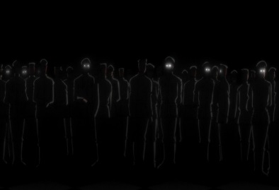 The lights flicker in the conference room. Someone calls Integra and says they're under attack from an unknown enemy. Integra tells him to buy as much time as possible, but he says the enemy is an army of ghouls. In one of the corridors, the ghoul army continue to advance, shooting anyone they come across. |