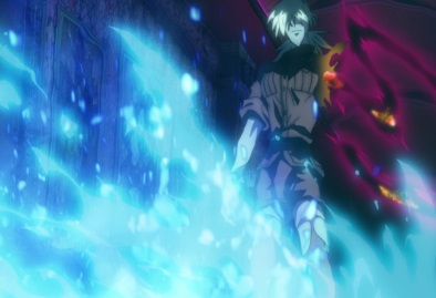 Vernedead still has the strength to keep going, but then falls when Zorin strikes him in the back with her scythe. He drops Seras, and falls down next to a wall. Seras asks what happened. He says she came in here to save him, now he has to save her. He lights up a cigarette. |