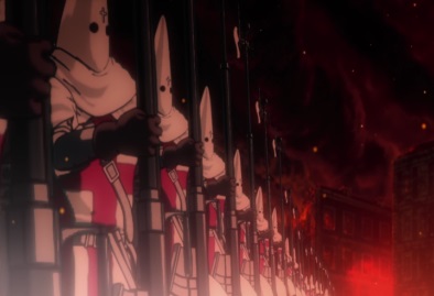 After killing another group, Seras looks around and says that she'll make them pay... every last one of them will be torn to shreds. Elsewhere, another group of Nazis approach the Round Table conference room. |