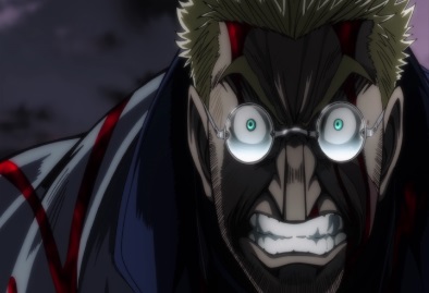 Integra happens to see his helicopter fly past, and says that he has betrayed them. Anderson says sneak attacks and betrayals are just par for the course in war. In some circumstances he'd even say they are worthy of praise, especially against heathens such as her. But this is different, and he can't let this pass. He thinks Maxwell has become enraptured by his own authority, and intoxicated by his power. They're meant to be mere instruments of a higher power, a blade in the service of God. |