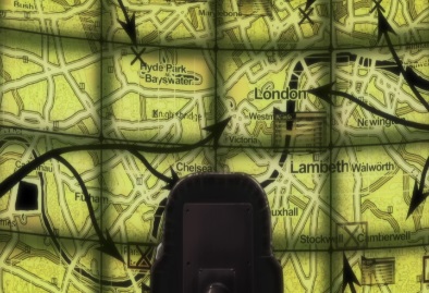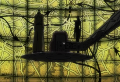 Both of them then suddenly look in the same direction. They've both sensed Alucard, who's finally arrived in London on the Eagle. |
