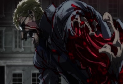As Alucard watches him, he thinks about how Anderson reminds him of those other men, who defeated him. He wants Anderson to try and rum him through, and pierce his heart. As Anderson continues, he sticks a bayonet into the mouth of a large foe, who survives, and grabs his arm. |
