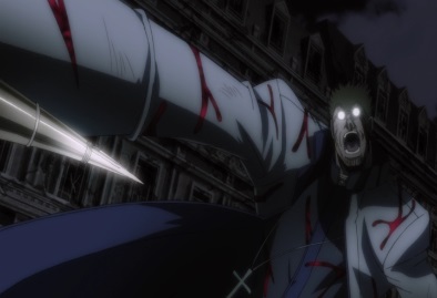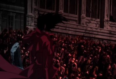 Alucard jumps off the ship and into the city, landing in the middle of a group of Vatican soldiers. Seconds later, Anderson appears... |