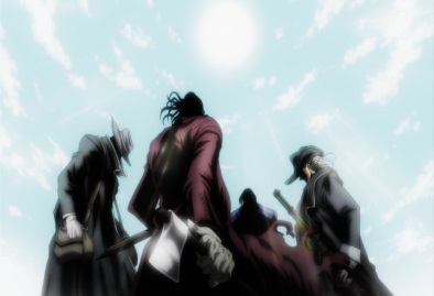 Heinkel and the others have appeared, and she says if they did went back they'd no longer be soldiers of Iscariot any more. Yumie slices the head off of the large guy who'd attacked Anderson. Yumie reminds him of the things he taught them, but he wanted some of them to survive, and carry on their work. Too many have died today already. But as he's about to charge full speed into hell, he might as well have some company. |