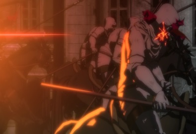 As some of the Iscariots get hit, they blow themselves up, taking as many enemies as they can with them. Yumie and Heinkel keep fighting... |
