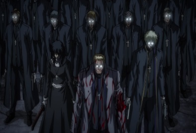 The Major says that death has been awakened. Doc is impressed with Alucard, calling what he has done magnificent. The Nazis and Vatican soldiers start firing... |
