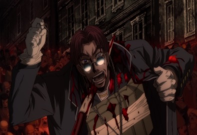 The Major listens to communications from his own forces, which are in disarray. But he isn't bothered, and tells his new butler to bring him some cocoa. He says that London has been destroyed, the crusaders have all perished, and the last battalion is dying in the streets. Alucard is down there, and he sits here. He thinks this is perfection, and everything is proceeding just as he planned. Meanwhile, Anderson continues to fight with Alucard's forces. |