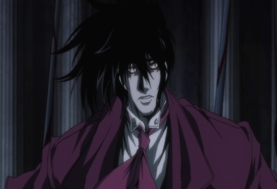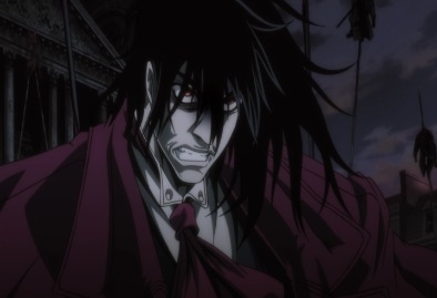 Alucard tells him he's injured, and his arm is hanging by a few strands of meat. What is he going to do -will he die like a dog, or on his feet like a man? |