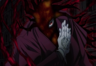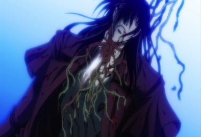 As Alucard reforms, he sees what the relic has done to Anderson. His body is covered in thorns, as Alucard says that Anderson's body is no longer that of a man. Only by gouging out each other's hearts can either of them die now. |