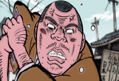 Yoshio: What, you think there's anyone in Europe who's bigger than me? Oh, you're pressing you luck, pal! That's enough out of you, you punk! |