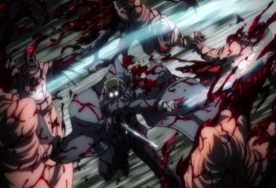 Alucard is then attacked by Anderson. Alucard uses the Jackal to shoot one of Anderson's arms, badly damaging it. Alucard challenges Anderson to kill him, and has his familiars attack. Anderson starts slaying any that get in his way, but is then assisted by Heinkel, Yumie and the other surviving Iscariot agents. Some of them blow themselves up to let Anderson progress. |