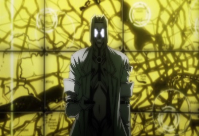 He then charges towards his opponent, destroying the thorny vines he sends out. As Integra and Seras watch, Integra thinks about what her father once told her. He said that there are many immortal monsters roaming the Earth. When he looked at them, he wondered if they were created out of their desire for immortality. |