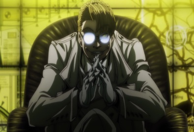 Alucard bows before Integra, and tells her to give him her orders. He can kill Walter without the slightest hesitation or hint of regret, but it's her will that commands the killing. The Major is watching, and tells Integra to say it. |